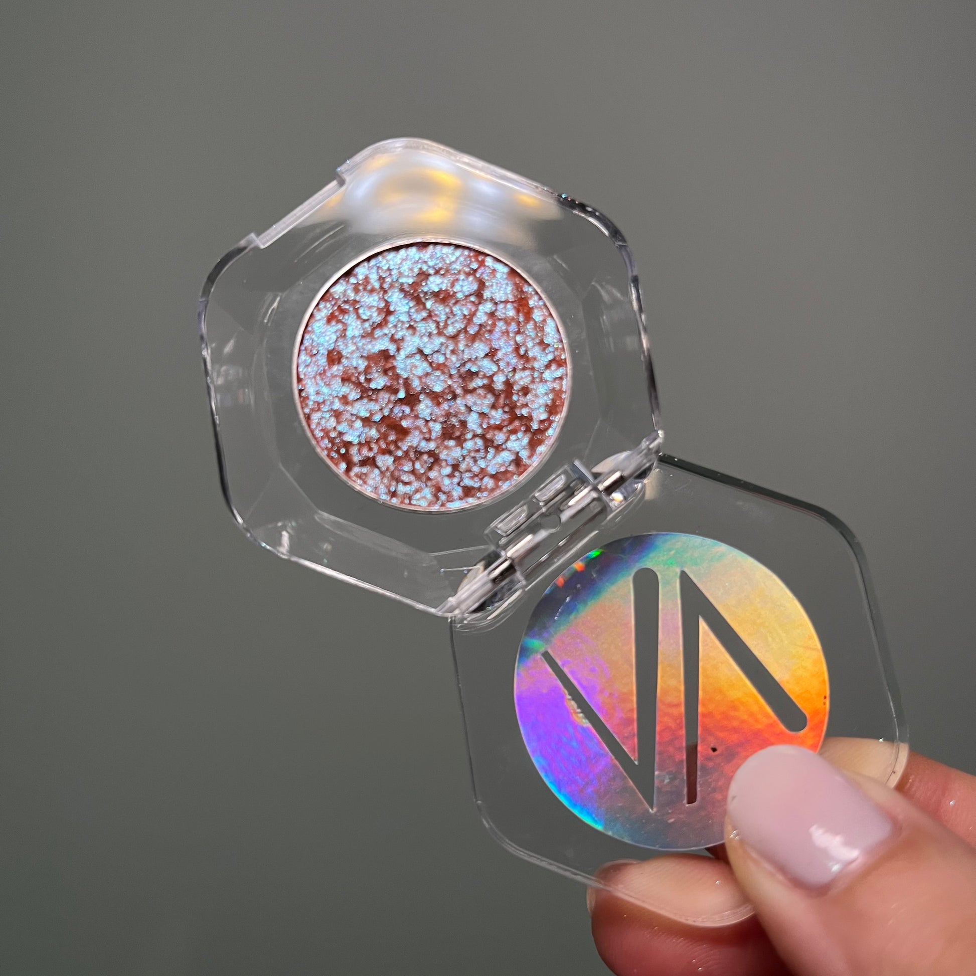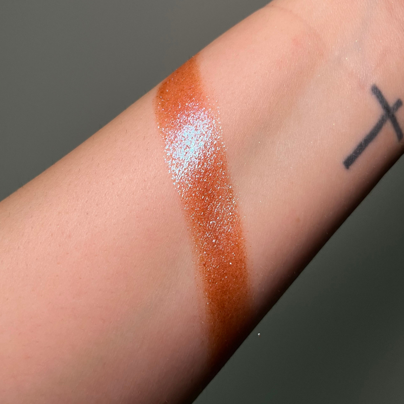 Pigmento prensado con destellos naranja, rosado, morado tornasol de alta pigmentacion, consistencia cremosa. Aplicalos con los dedos y listo!