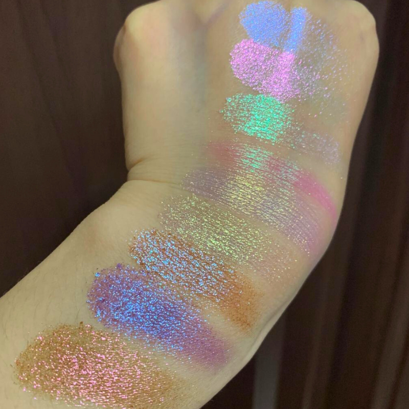 Alta pigmentación, variedad de tonos tornasolados e iridiscentes. ¡Aplícala con los dedos y listo!